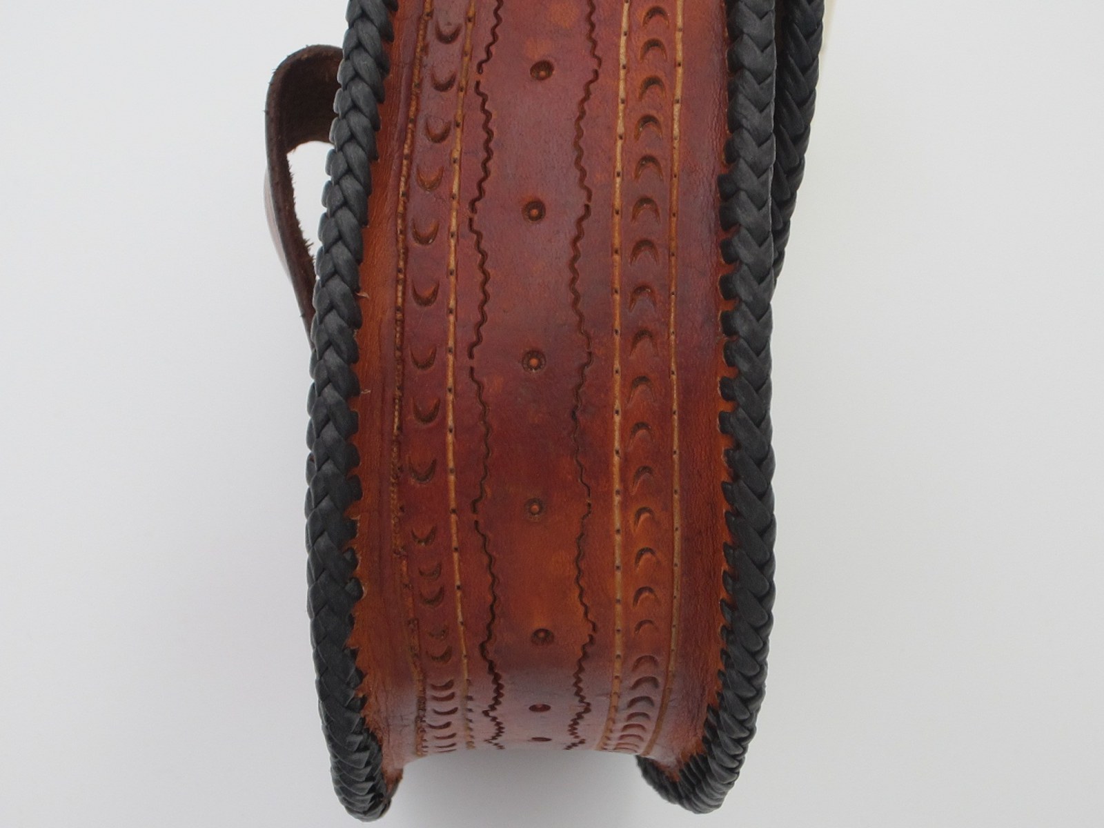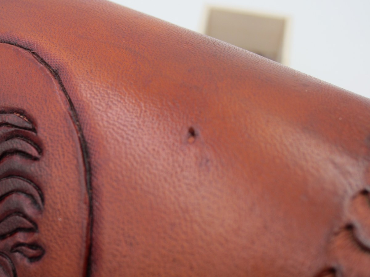 Unter der Punzierung ist z.B. eine längliche Narbe die beim Färben nachgedunkelt hat. Diese zu verstecken wäre zwar möglich gewesen, aber hier tatsächlich nicht gewollt.