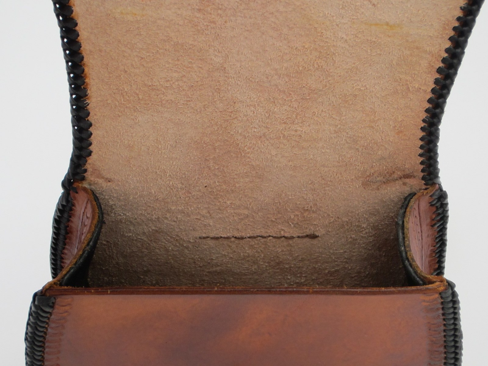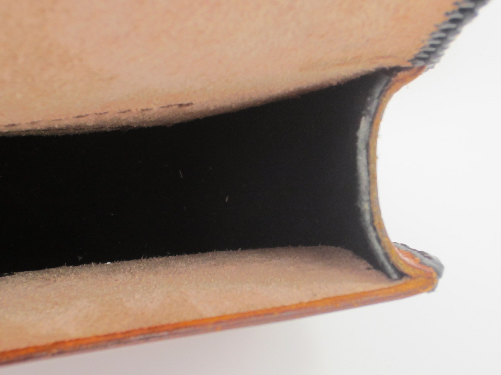 Das hatte dann gleichzeitig einen Vorteil: Das Velourleder hat eine recht weiche Oberfläche und dämpft so Geräuschentwicklung durch Klimpern von Münzen oder ähnlichem.