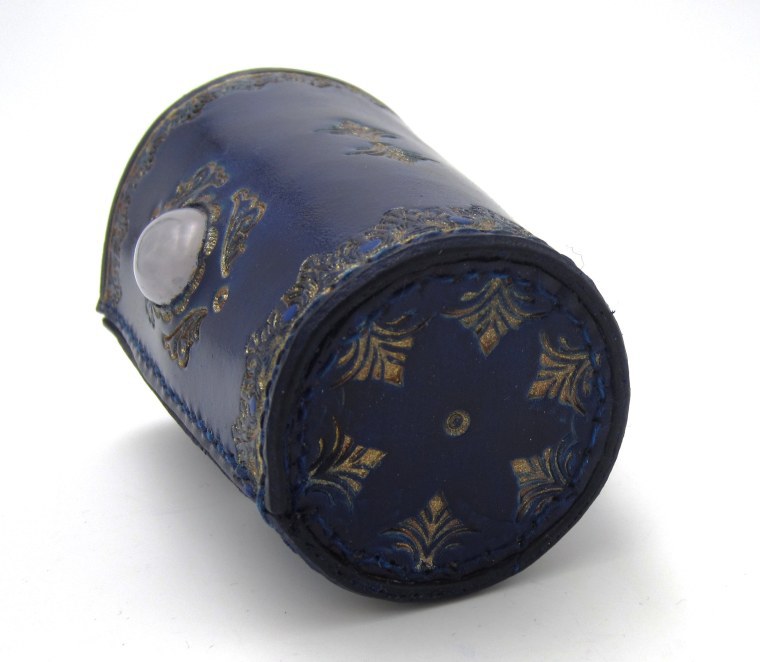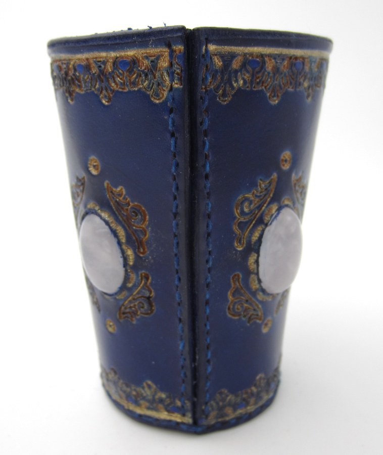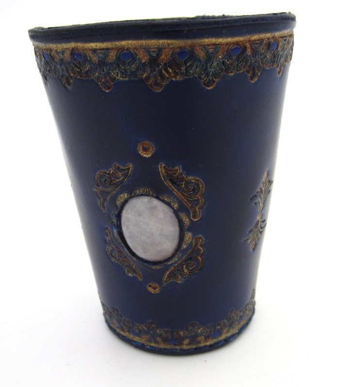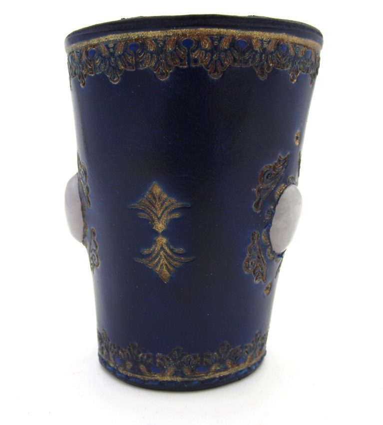 - Ein edler Becher in Blau und Gold mit eingesetzem Quarz